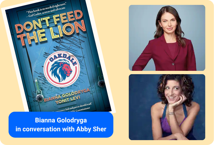 Join us for a powerful, family-centered conversation with Don’t Feed the Lion co-author Bianna Golodryga in dialogue with writer, performer, and audiobook narrator Abby Sher, featuring a special video message from Israeli journalist and co-author Yonit Levi.